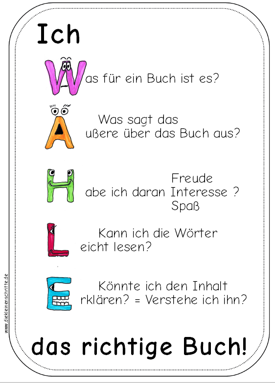 Mit dieser "Checkliste" können Kinder zu ihrem Leselevel passende Bücher finden. Dies ist für den Erfolg des Lesetrainings von entscheidender Bedeutung: